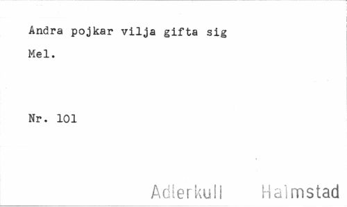 //// Andra pojkar vilja gifta sig //// Mel. //// Nr. 101 //// Adlerkull Halmstad ////