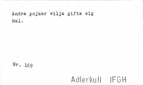 //// Andra pojkar vilja gifta sig //// Mel. //// Nr. 169 //// Adlerkull IFGH ////