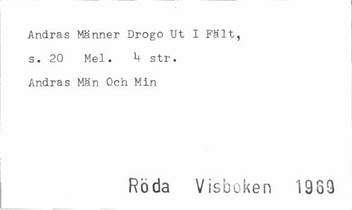 //// Andras Männer Drogo Ut I Fält, s. 20 Mel. k str. Andras Män Och Min //// Röda Visboken 1989 ////