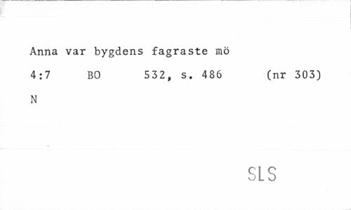 //// Anna var bygdens fagraste mö //// 4:7 BO 532, s. 486 (nr 303) //// N //// SLS ////