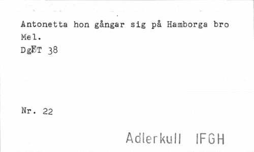 //// Antonetta hon gångar sig på Hamborga bro //// Mel. //// DgST 38 //// Nr. 22 //// Adlerkull IFGH ////