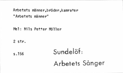 //// Arbetets männer,bröder,kamrater "Arbetets männer" //// Mel: Nils Petter Möller //// 2 str. //// s>156 Sundelöf: //// Arbetets Sånger ////