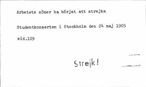 //// Arbetets söner ha börjat att strejka //// Studentkonserten i Stockholm den 2b maj 1905 sid.109 //// Strejk! ___ ////