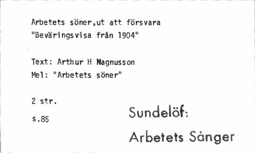 //// Arbetets söner,ut att försvara "Beväringsvisa från 1904" //// Text: Arthur H Magnusson Mel: "Arbetets söner" //// 2 str. //// s85 Sundelöf: //// Arbetets Sånger ////