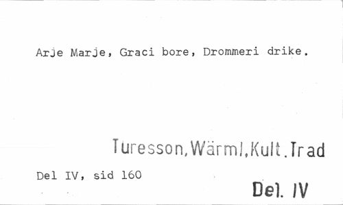 //// Arje Marje, Graci bore, Drommeri drike. //// Turesson, WärmJ, Kult. Tr ad //// Del IV, sid 160 //// De). IV ////