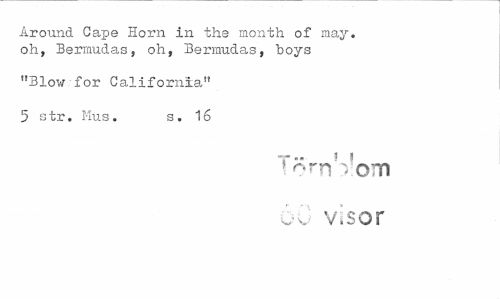 //// Around Cape Horn in the month of may. oh, Bermudas, oh, Bermudas, boys //// "Blow for California" //// 5 str. Mus. s. 16 //// OTTI //// o-.; visor ////