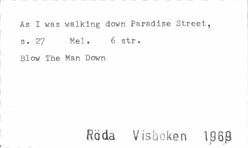 //// As I was walking down Paradise Street, s. 27 Mel. 6 str. Blow The Man Down //// Röda Visboken 1j96j9 ////