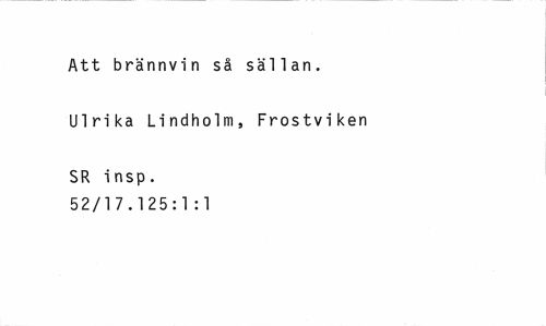 //// Att brännvin så sällan. //// Ulrika Lindholm, Frostviken //// SR insp. 52/1 7.1 25:1 :1 ////