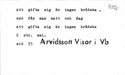 //// feec, //// Att gifta sig är ingen brådska , oro får man natt och dag Att gifta sig är ingen brådska 2 str. mel. //// sid 55 Arvidsson Visor i Vb ////
