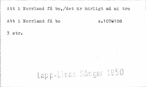 //// Att i Norrland få bo,/det är härligt må ni tro Att i Norrland få bo s.107»108 //// 3 str. //// f • or- c ' r r c r 1 G Rf) //// Lapp-Lisas ocinyti ////