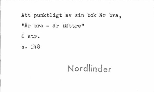 //// Att punktligt av sin bok är bra, "Är bra - är bättre" 6 str. s. l>+8 //// Nordlinder ////