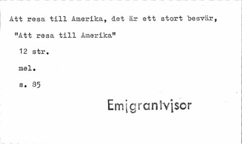 //// Att resa till Amerika, det är ett stort besvär, "Att resa till Amerika" 12 str. mel. s. 35 //// Emigrcnlvjscr ////