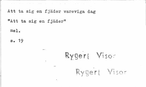 //// Att ta sig en fjäder vareviga dag "Att ta sig en fjäder" mel. s. 19 //// ! Rygeri Yiso.- //// ^ygert Visor ////