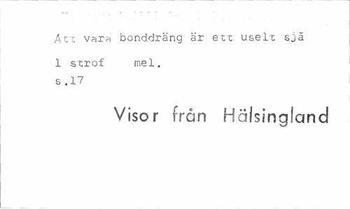 //// Att värn bonddräng ar ett uselt sjä //// 1 strof mel. s .17 //// Visor från Hälsingland ////
