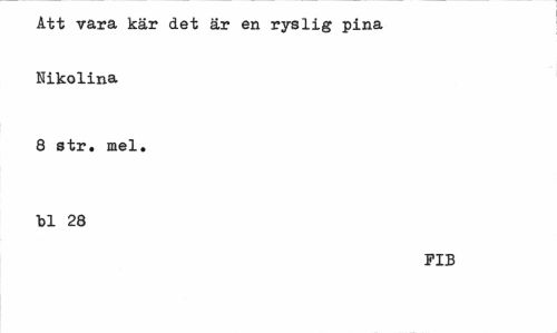 //// Att vara kär det är en ryslig pina Nikolina //// 8 str. mel. bl 28 //// FIB ////