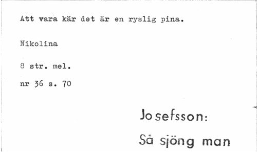 //// Att vara kär,ciet är en ryslig pina. //// Nikolina //// 8 str. mel. nr 36 s. 70 //// Jo sefsson: Så sjöng man ////