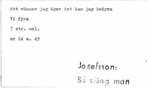 //// Att vänner jag äger det kan jag bedyra Vi fyra 7 str. mel. nr 24 s. 49 //// Josefsson: //// Sa s/önp man ////