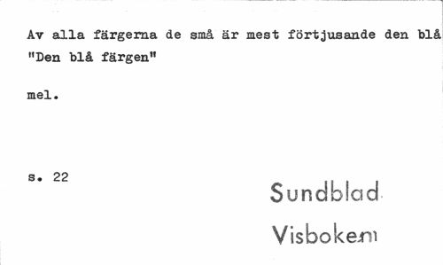 //// Av alla färgerna de små är mest förtjusande den blå "Den blå färgen" //// mel. //// Sundblad V is bo kem ////