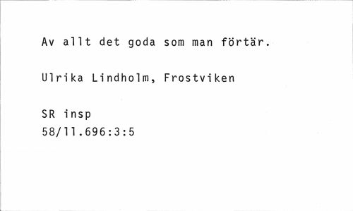 //// Av allt det goda som man förtär. //// Ulrika Lindholm, Frostviken //// SR insp 58/11.696:3:5 ////