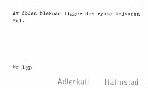 //// Åv döden bleknad ligger den ryske kejsaren Mel. //// Nr 15D //// Adlerkuil Halmstad ////