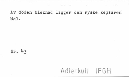 //// Av döden bleknad ligger den ryske kejsaren Mel. //// Nr. U3 //// Adlerkuil iFGH ////