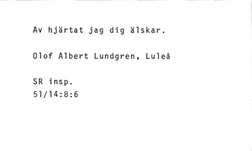 //// Av hjärtat jag dig älskar. //// Olof Albert Lundgren, Luleå //// SR i nsp. 51/14:8:6 ////