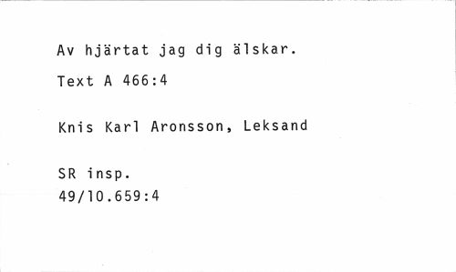 //// Av hjärtat jag dig älskar. Text A 466:4 //// Knis Karl Aronsson, Leksand //// SR i nsp. 49/10.659:4 ////