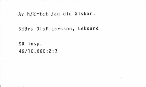 //// Av hjärtat jag dig älskar. //// Björs Olaf Larsson, Leksand //// SR i nsp . 49/10.660:2:3 ////
