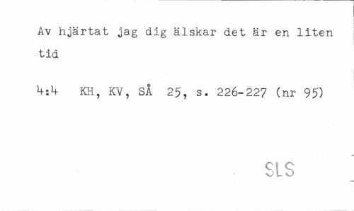//// Av hjärtat jag dig älskar det är en liten tid //// KH, KV, SÅ 25, s. 226-227 (nr 95) //// SLS ////
