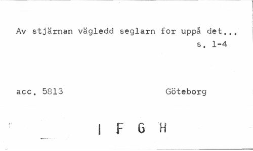 //// Av stjärnan vägledd seglarn for uppå det... //// s. 1-4 //// acc. 5813 Göteborg //// ifGH ////