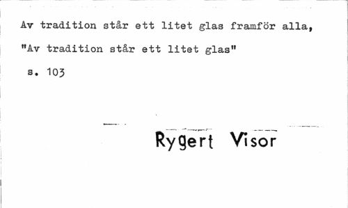 //// Av tradition står ett litet glas framför alla, "Av tradition står ett litet glas" s. 103 //// Rygert Visor ////