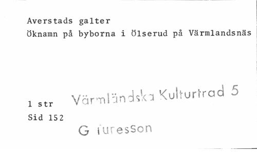 //// Averstads galter //// Öknamn på byborna i ölserud på Värmlandsnäs //// x str Vämlandslca Kulturfrad 5 //// Sid 152 //// G i"uresson ////