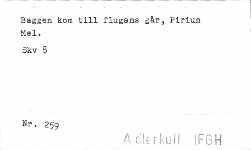//// Baggen kom till flugans går, Pirium Mel. //// Skv 8 Nr. 259 //// A clerkull IFGH ////