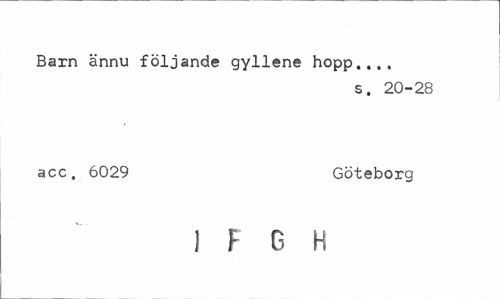 //// Barn ännu följande gyllene hopp..,, //// s. 20-28 //// acc. 6029 Göteborg //// I F D H ////