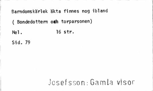 //// Barndomskärlek äkta finnes nog ibland ( Bondedottern oeh torparsonen) Mel. 16 str. //// Sid. 79 //// Josefsson: Gamla visor ////