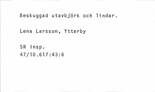 //// Beskuggad utavbjörk och lindar. //// Lena Larsson, Ytterby //// SR i nsp. 47/10.617:43:6 ////