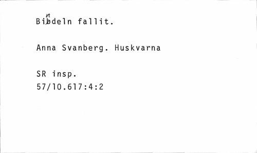 //// BiSdeln fallit. //// Anna Svanberg. Huskvarna //// SR insp. 57/10.617:4:2 ////