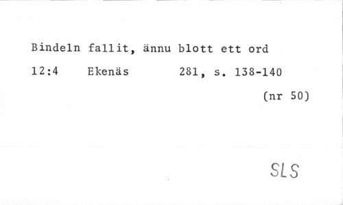 //// Bindeln fallit, ännu blott ett ord 12:4 Ekenäs 281, s. 138-140 //// (nr 50) //// SIS ////