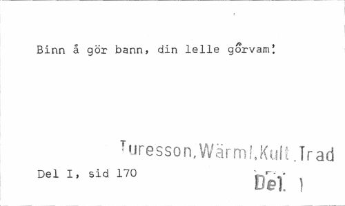 //// Binn å gör bann, din lelle gorvam! //// Turesson,Wärm!,Kult .Irad //// Del I, sid 170 ¦ //// Dal 1 ////