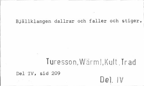 //// Bjällklangen dallrar och faller och stiger, //// Turesson, Wärml,Kult. Tr ad //// Del IV, sid 209 //// De). IV ////