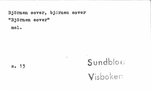 //// Björnen sover, björnen sover "Björnen sover" mel. //// Sundbio c ; //// S . I j //// Visboken ////