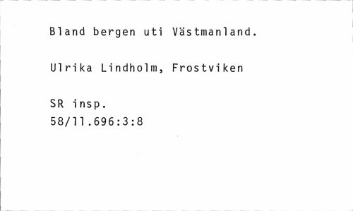 //// Bland bergen uti Västmanland. //// Ulrika Lindholm, Frostviken //// SR insp. 58/11.696:3:8 ////
