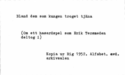 //// Bland dem som kungen troget tjäna //// (Om ett hasardspel som Erik Tersmeden deltog i) //// Kopia ur Rig 1952. Alfabet, avd. arkivsalen ////