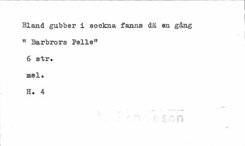 //// Bland gubber i aockna fanns dä en gång 11 Barbrors Pelle" 6 str. mel. H. 4 //// - e cn ////