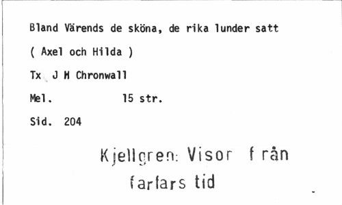 //// Bland Värends de sköna, de rika lunder satt //// ( Axel och Hilda ) //// Tx J H Chronwall //// Mel. 15 str. //// Sid. 204 //// Kjellgren: Visor f rån farfars tid ////