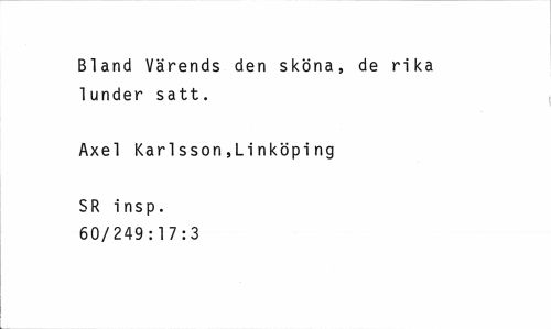 //// Bland Värends den sköna, de rika lunder satt. //// Axel Karlsson,Linköping //// SR insp. 60/249:17:3 ////