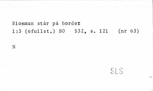 //// Blomman står pä bordet //// 1:3 (o ful1st.) BO 532, s. 121 (nr 63) //// N //// SLS //// • —t ////