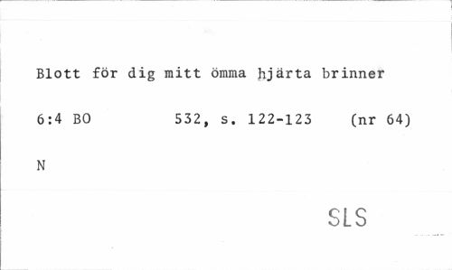 //// Blott för dig mitt ömma hjärta brinner 6:4 BO 532, s. 122-123 (nr 64) //// N //// SLS ////
