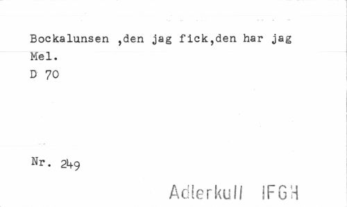 //// Bockalunsen ,den jag fick,den har jag Mel. D 70 //// Nr. 21+9 //// Adierkull IFGH ////