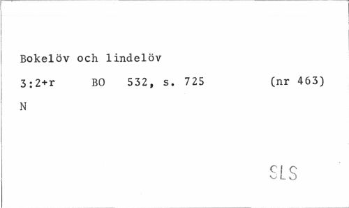 //// Bokelöv och lindelöv //// 3:2+r BO 532, s. 725 (nr 463) //// N //// SLS ////